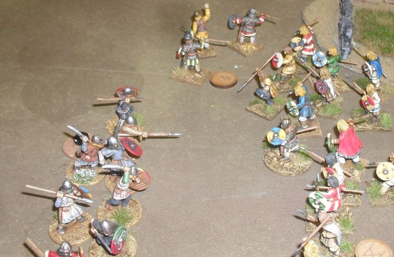Things did not go well, in the left hand combat I won, but not by enough to overhaul the Phalanx advantage. On the right things did not go so well. I lost the combat by one and took my Break Test....