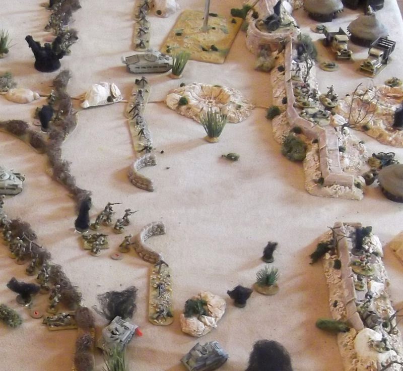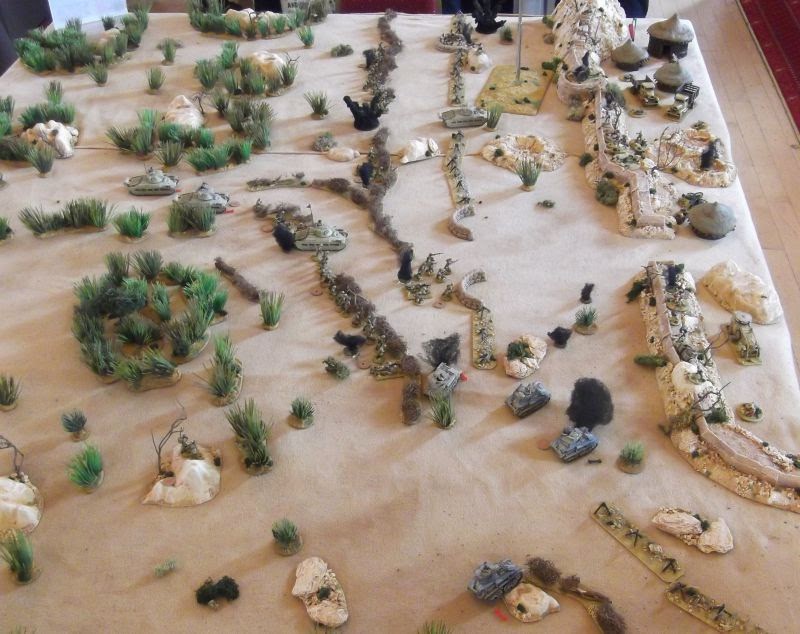 The game seemed to go pretty much as per the actual engagement, in the actual attack 2/3 of the British armour threw tracks on the poor terrain or were immobilised by Italian mines. The British took the fort but eventually abandoned it after concerted attacks by the Regia Aeronautica after they had regained air superiority.