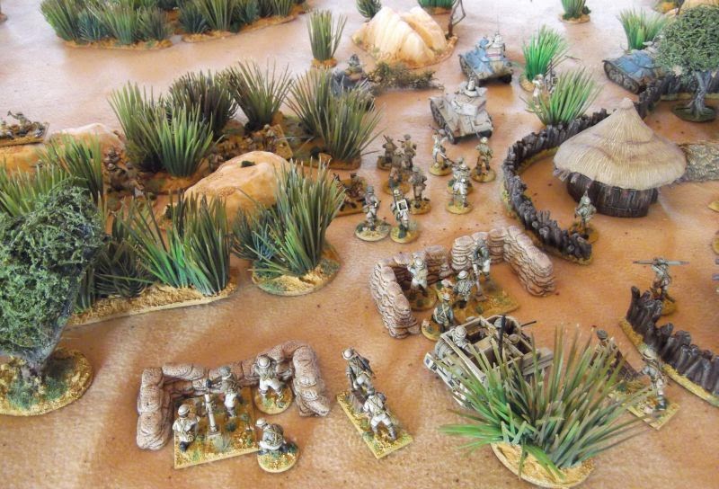 Here are lots more photos, all the British and Indians are mine, painted by me, the Italians and the terrain is James and was all painted by him.