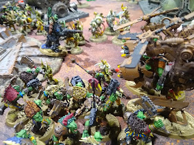 I took Warlord, Weirdboy, two units of Boyz, two units of Beast Snaggas, one unit of Grots, a Mek, a unit of Nobs, two units of Deffkopters, two Deff Dredds and for the first time a unit of Killa Kans and the newly painted Trukk.